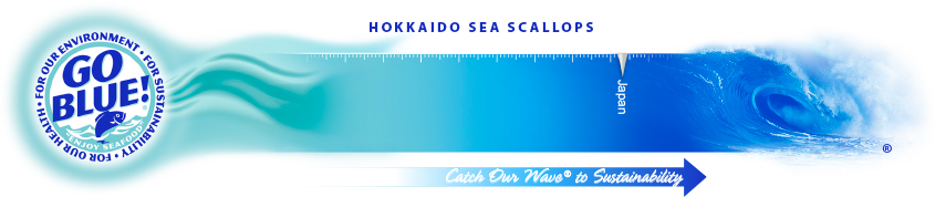 Actions that Sea Port is UndertakingSea Port supports this fishery and by doing so will help advance the environmental sustainability of this well managed fishery. This well managed wild scallop fishery adds another sustainable and responsibly produced seafood to a growing variety of seafood choices that will help sustain the health of both humans and the planet’s ecosystems. Sea Port believes that, in aggregate, choosing from a diverse variety of seafood is better for sustaining the world’s seafood resources and that Hokkaido Sea Scallops should be a part of this variety. We created the sustainability assessments for each of our seafood items in order to reveal the existing and potential environmental impacts and risks that are associated with producing them for human consumption. This allowed us to establish the starting position for each of our seafood items along our progressive Go Blue! Seafood Sustainability Spectrum®. These assessments are only a single snapshot in time and because of this, we will continue to assess and update the critical sustainability needs associated with our supply sources and issue updates to the Go Blue! Seafood Sustainability Spectrum® as needed. There is a growing global awareness for the need to assure the sustainability of farmed and wild caught seafood and because of this; all around the world positive changes are rapidly occurring at all levels of the seafood supply chain. We will continue to spread this growing awareness and work with our many industry partners to improve the sustainability of all seafood, which we believe is the ideal protein of choice to feed an ever growing world population. Our Go Blue! Seafood Sustainability Spectrum® serves as our compass and yardstick as we strive to move all our products forward to becoming more sustainable. Please join us in this committed quest and Catch Our Wave® to sustainability by choosing a diverse variety of responsibly produced seafood as part of your diet.