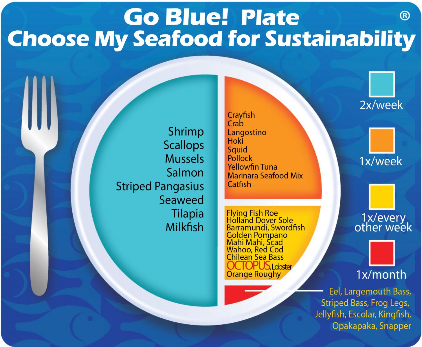 Go Blue! Seafood Sustainability Spectrum*Click here for an explanation of our Sustainability Spectrum