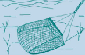TRAP & POTA wide variety of nets, barrages or pots are used to capture fish and shellfish. By design, the targeted species can enter voluntarily but will be unable to escape. The entrance itself transforms into a non-return device, first allowing the fish to enter the trap but then making it impossible to leave. Capture by trap typically requires the use of bait. Pieces of fish are most often used, but artificial baits are also employed. There are numerous types of traps used commercially in the United States, built with a number of different materials. Traps are the primary method of harvesting many commercially important species like crab and lobster. Other species commonly captured by traps include eel, octopus and crawfish. |